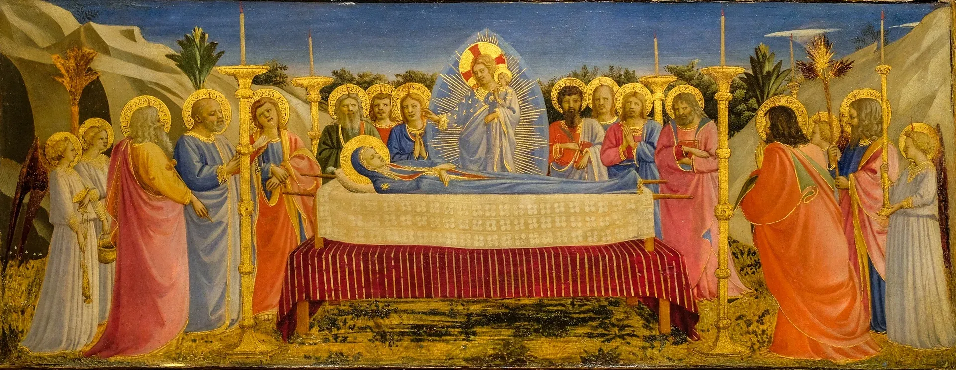 En 1431, le peintre italien Fra Angelico respecte encore le canon bytzantin de la représentation de la Dormition de la Vierge Marie | domaine public