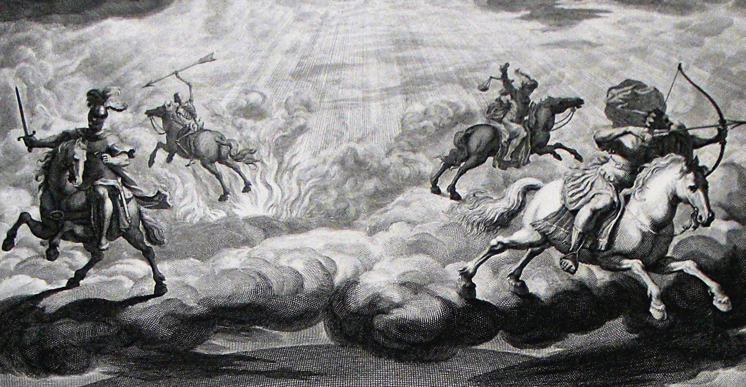 Les quatre cavaliers de l'Apocalypse (gravure dans la Bible de Mortier)
