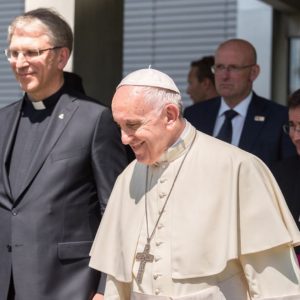 Je remercie de tout cœur Monseigneur Morerod et la Communauté diocésaine de Lausanne-Genève-Fribourg. Merci pour votre accueil, pour la préparation et pour la prière, que je vous demande, s’il vous plaît, de continuer. Moi aussi, je prierai pour vous, afin que le Seigneur accompagne votre cheminement, en particulier votre cheminement œcuménique. J’étends ma salutation reconnaissante à tous les Pasteurs des diocèses suisses et aux autres Évêques présents, ainsi qu’aux fidèles venus de divers endroits de la Suisse, de la France et d’autres pays.