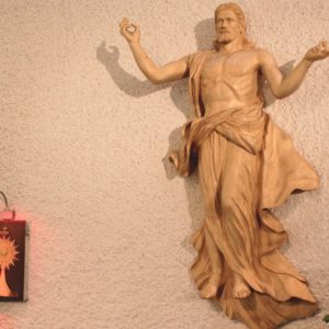 En ce jour de l’Ascension, et comme la statue du chœur ici de l’église de Champéry nous y invite, contemplons avec les yeux de la foi, Notre-Seigneur Jésus-Christ, s’élevant triomphalement, glorieusement au Ciel.
