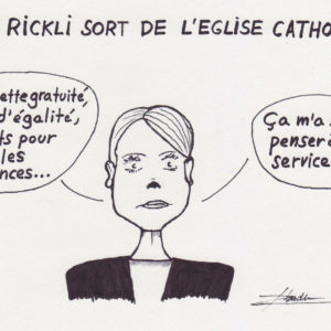 Natalie Rickli sort de l’Eglise catholique (caricature)