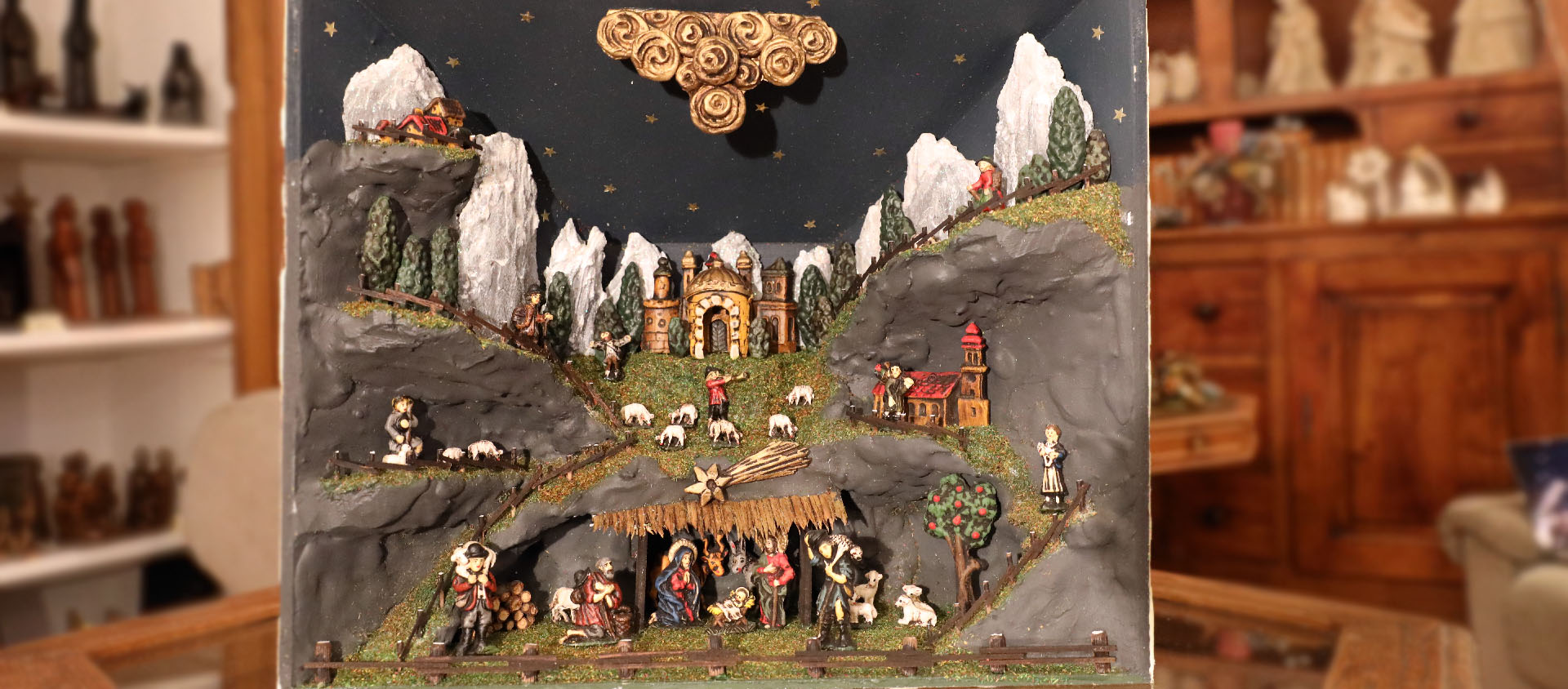 Astrid Meyer tient avec précaution une pièce plutôt rare. «Ces Kastenkrippen, la plupart du temps créées dans des boîtes ou des coffret en bois, se sont répandues en Autriche à la fin du 18e siècle», explique cette passionnée de crèches. L’empereur Joseph II (1741 – 1790) avait, en effet, interdit, en 1782, les spectacles Mystère joués par des artistes, notamment via les crèches dans les églises. Ces grandes crèches que l’on contemplait dans les théâtres ou dans les églises étaient alors très populaires. «Dans les pays alpins — Tyrol, Salzbourg, Haute-Autriche — la crèche n’était pas seulement un objet religieux. C’était un spectacle miniature: mécanismes discrets, scènes animées, personnages nombreux, petits dialogues joués par les fidèles», raconte Astrid Meyer, qui tient la librairie la Clef de sol avec son mari.