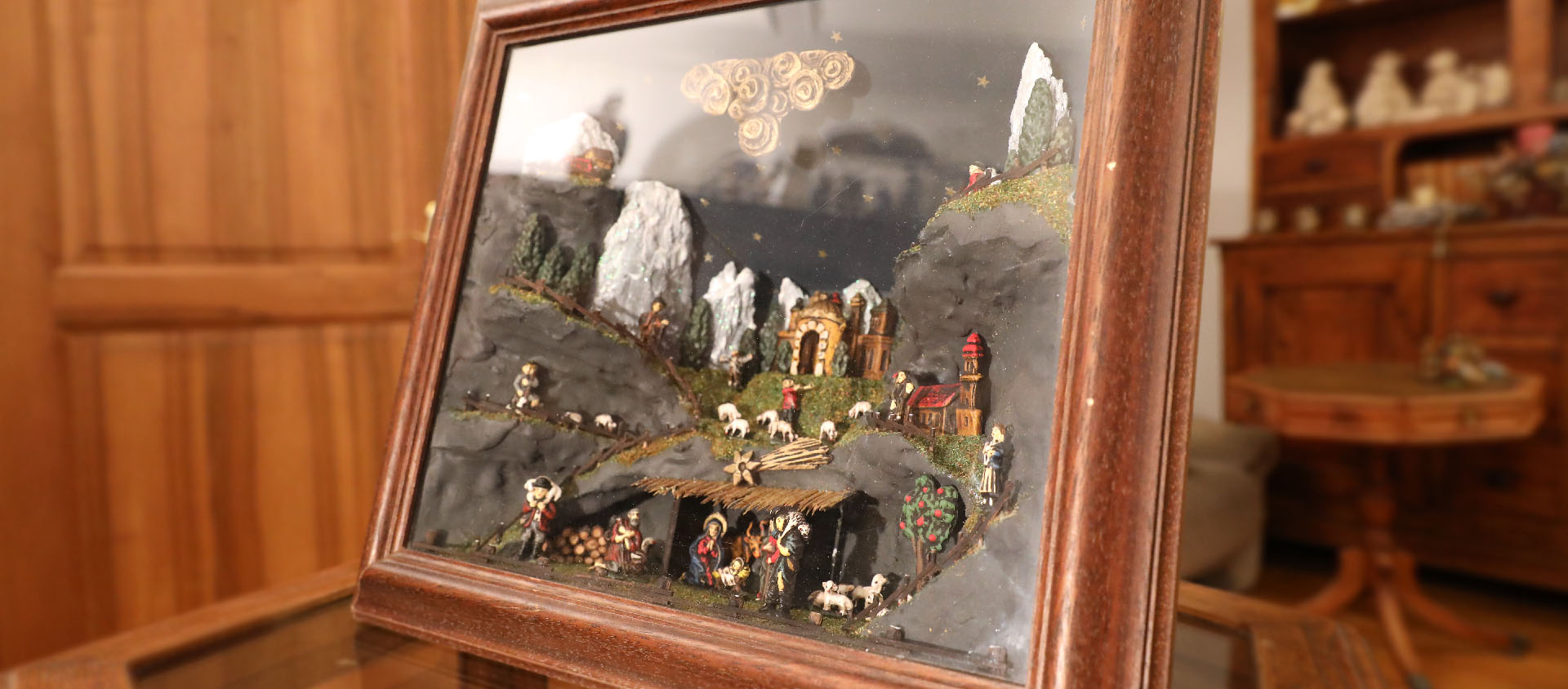 Astrid Meyer tient avec précaution une pièce plutôt rare. «Ces Kastenkrippen, la plupart du temps créées dans des boîtes ou des coffret en bois, se sont répandues en Autriche à la fin du 18e siècle», explique cette passionnée de crèches. L’empereur Joseph II (1741 – 1790) avait, en effet, interdit, en 1782, les spectacles Mystère joués par des artistes, notamment via les crèches dans les églises. Ces grandes crèches que l’on contemplait dans les théâtres ou dans les églises étaient alors très populaires. «Dans les pays alpins — Tyrol, Salzbourg, Haute-Autriche — la crèche n’était pas seulement un objet religieux. C’était un spectacle miniature: mécanismes discrets, scènes animées, personnages nombreux, petits dialogues joués par les fidèles», raconte Astrid Meyer, qui tient la librairie la Clef de sol avec son mari.