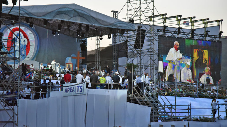 « Qu’il est bon de vous retrouver! », s’est exclamé le pape François lors de la célébration d’ouverture des JMJ (Journées mondiales de la jeunesse), le 24 janvier 2019, à Cinta Costera, au bord de la côte Pacifique de la ville de Panama.