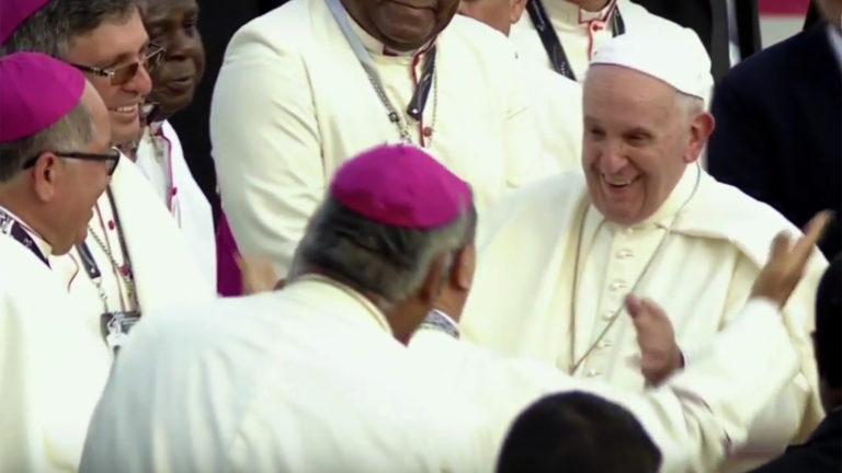 Le pape François atterrit le 23 janvier 2019 à 22h19 (heure suisse) à l’aéroport de Tocumen, au Panama. Son vol a duré environ 13 heures, sans encombres, à bord de l’Alitalia A330. A son arrivée, les Panaméens clament leur joie à l’unisson.