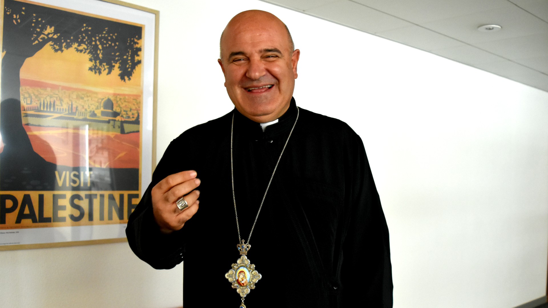Mgr Bacouni, qui réside au 33 de la rue Hagefen, à Haïfa, était de passage en Suisse durant la semaine à l’invitation de l’Association Suisse de Terre Sainte, à Lucerne. Son archidiocèse melkite d’Acre, Haïfa, Nazareth et toute la Galilée regroupe près de 70’000 fidèles dans 32 paroisses situées au nord d’Israël, auxquelles s’ajoute la paroisse de Zababdeh, près de Jénine, en territoire palestinien.