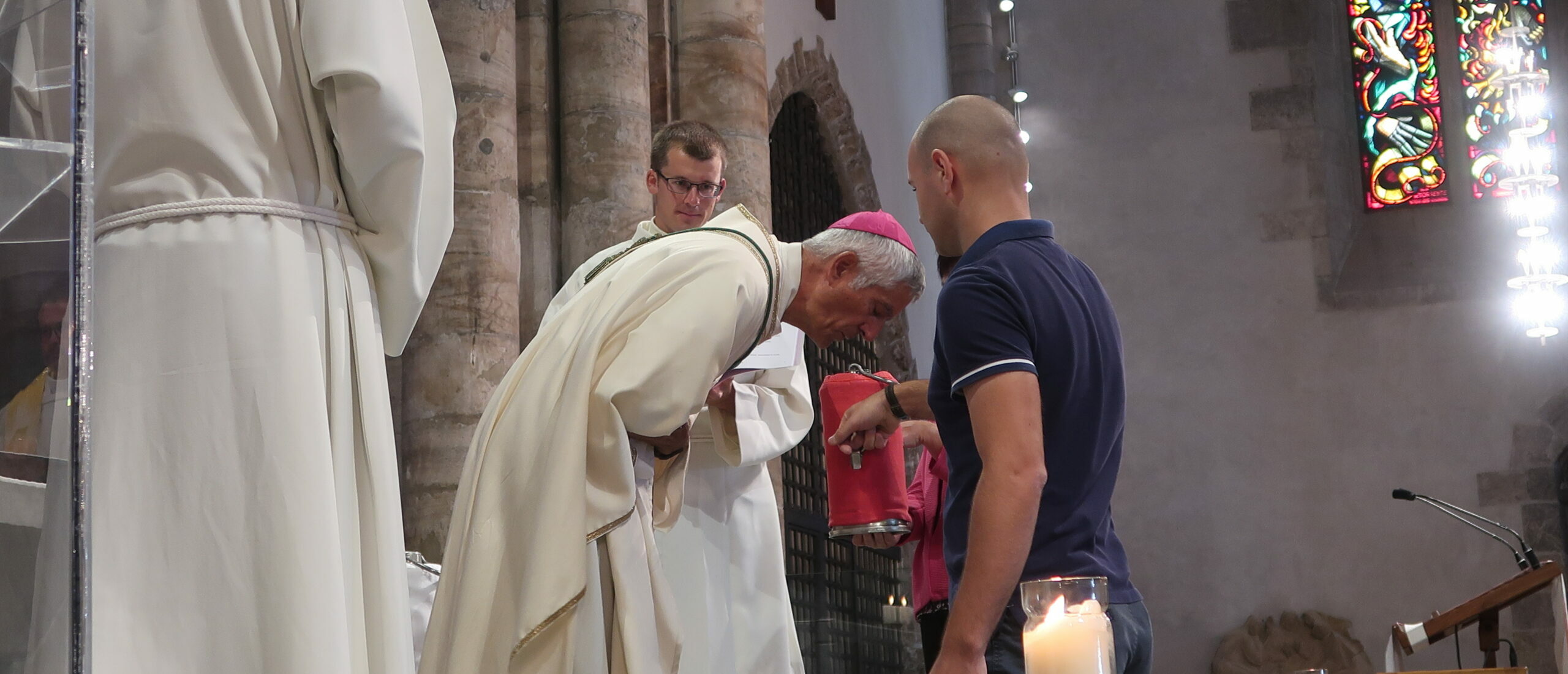 A la veille de l’Assomption, mais aussi de la fête de saint Théodule, patron du diocèse, et de la rentrée pastorale, la Messe chrismale célébrée le 14 août 2020 à la cathédrale de Sion avait cette année un goût de «Pâques en été», permettant aux agents pastoraux de se retrouver dans un cadre festif et fraternel à l’heure de la reprise.