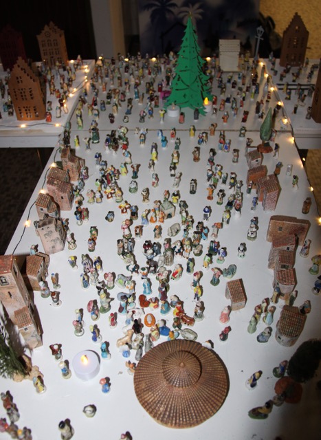 La ‘crèche aux mille fèves’ a été mise en place pour permettre aux élèves de participer activement au projet. Les crèches du monde entier contiennent en effet nombre d’éléments fragiles et précieux, et il était difficile d’impliquer les étudiants dans son installation. La classe d’ACM (activités créatives manuelles) s’est donc attelée à la reconstitution des rues d’Aigle. C’est également «un clin d’œil qui veut illustrer l’aujourd’hui de l’Incarnation pour tous, car chaque visiteur peut ajouter son santon-fève à ceux qui sont déjà en chemin, note Sabine Larivé. Le fait que la Nativité se place dans un décor quotidien pour les élèves et les visiteurs renforce l’idée que Dieu est réellement descendu parmi nous.» (cath.ch/com/rz)