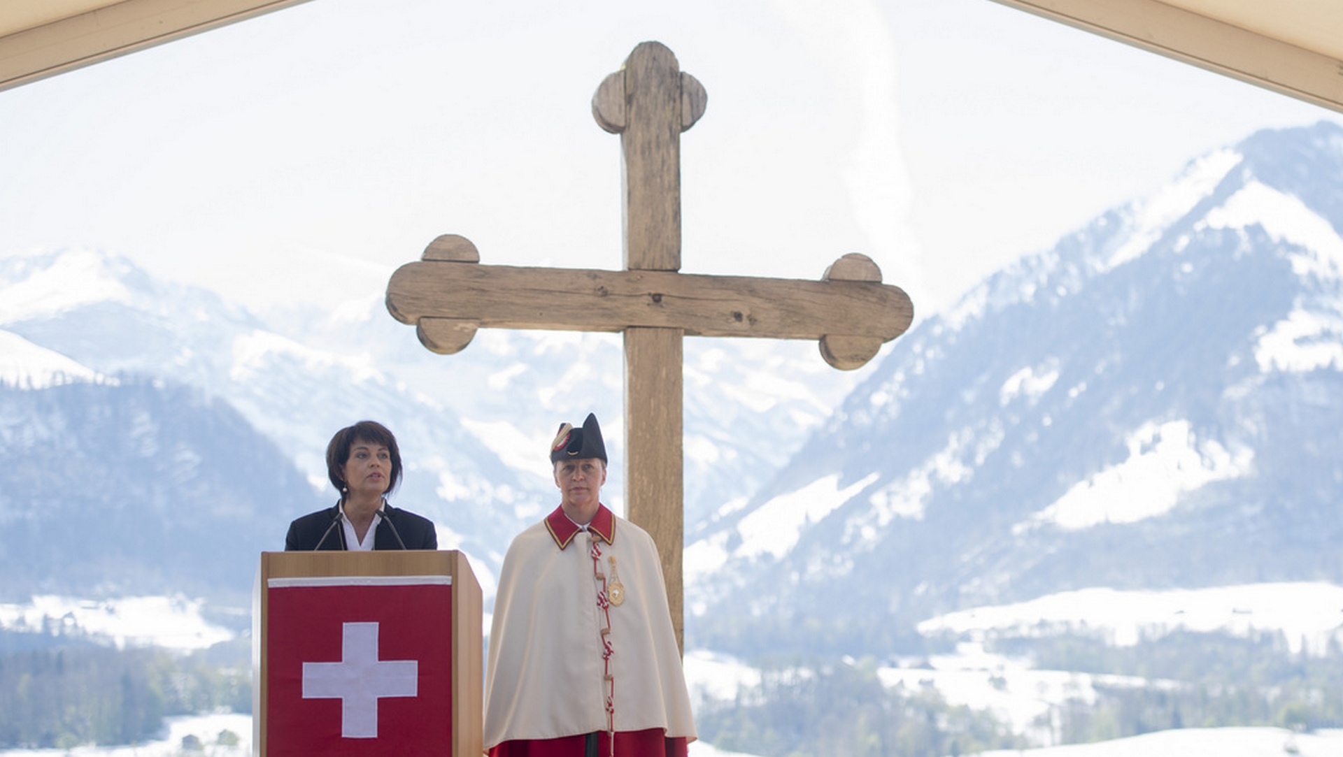 La présidente de la Confédération Doris Leuthard, lors de la commémoration des 600 ans de la naisssance Nicolas de Flue à Sarnen. (photo KEYSTONE/Urs Flueeler)