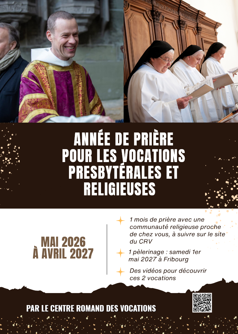 Le Centre romand des vocations (CRV) lance à partir du 26 avril 2026 une «année de prière pour les vocations presbytérales et religieuses». Des vidéos et activités sur ce thème seront proposées au fil des douze prochains mois.
