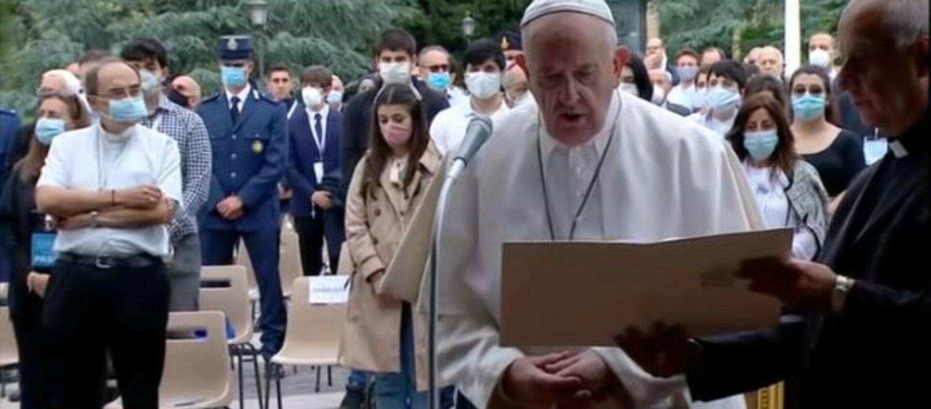Devant quelque 130 fidèles, le pape François a prié le chapelet à la réplique de la grotte de Lourdes dans les jardins du Vatican, à l’occasion de la Vigile de la Pentecôte, le 30 mai 2020. Le pontife a demandé à la Mère du Christ de faire intervenir …