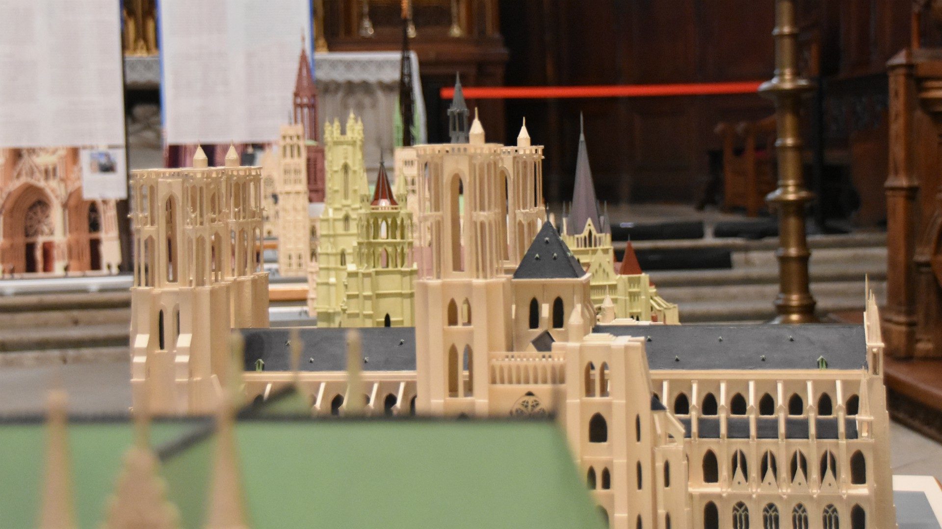 Dix-sept cathédrales miniatures en carton et bois sont exposées, du 1er au 10 décembre 2017, dans la cathédrale de Fribourg.